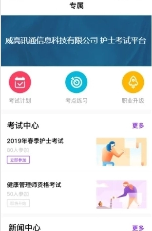 护士通是一款由山东威高互联科技有限公司发行的专门适用于护士学习的软件,该软件中是含有大量的关于医学的护理知识,护士能够得到更好的护理与学习。方便护士随时随地进行课程学习和考试练习。另外系统拥有海量题库可供医院及护理人员使用,同时各医院拥有自己专属的管理后台,方便管理护理人员,上传学习资料、发放通知、组织培训及考试。