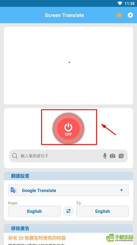 要使用Screen Translate屏幕翻译器,第一步请点击红色的OFF键。