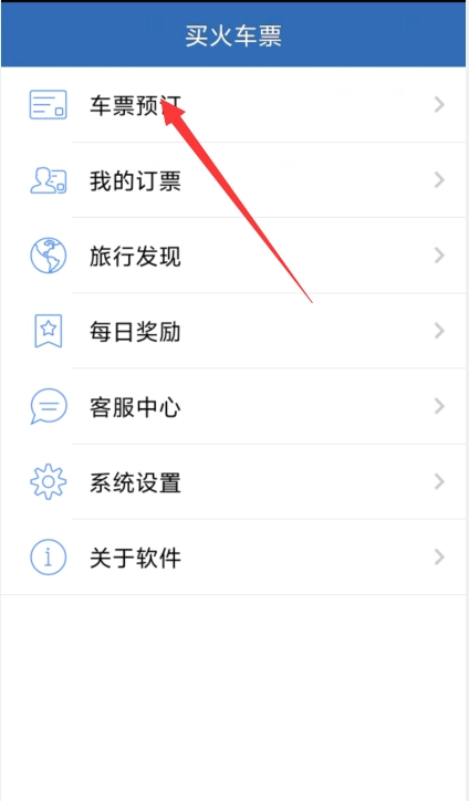 第一步:在首页中点击车票预订的功能,进入车票查询界面中吧。