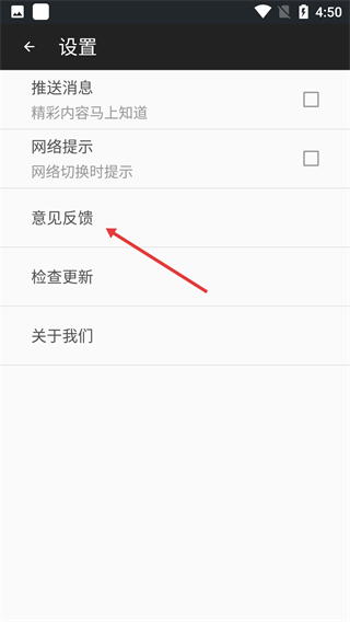 在设置页面找到并点击【意见反馈】选项,即可进入反馈内容的填写界面。