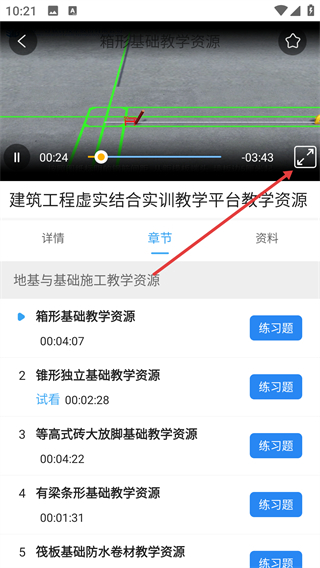 在教学资源的播放界面里,点击全屏按钮就能切换到全屏模式,这样可以更清晰地观看实训教学内容。
