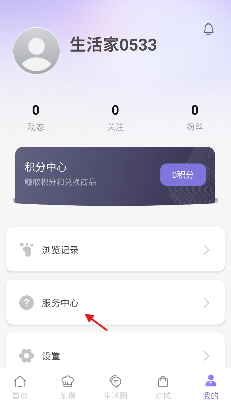 2. 当您进入 “我的” 页面后,向下滑动界面,找到 “服务中心” 板块,接着点击此选项,即可跳转到新页面。