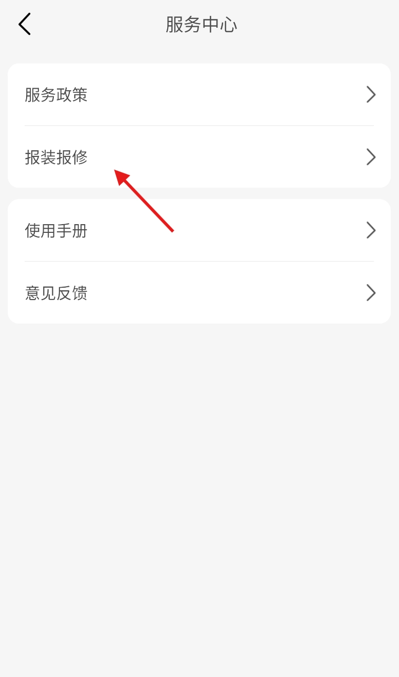 3、于“服务中心”页面,找到“报装报修”功能按键,点击后进入报修服务入口。