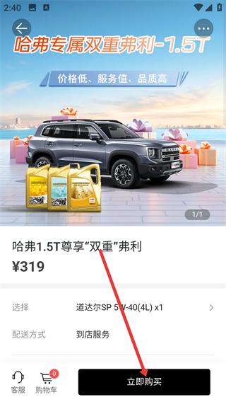 点击【哈弗1.5T尊享“双重”弗利】商品,进入详情页即可查看【价格】与【配送方式】,随后点击【立即购买】就能完成操作。