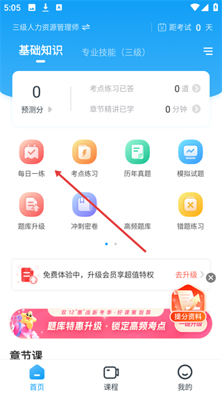 进入显示“三级人力资源管理师”的主界面后,找到“每日一练”功能入口并点击,即可进入练习页面。
