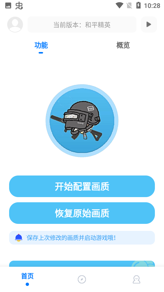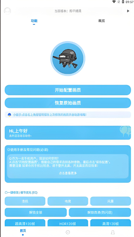 打开KN画质助手,选择和平精英,接着点击开始配置画质(要是点击最上方的当前版本,还能切换成其他游戏)