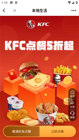 在本地生活板块,找到【肯德基】的线上点餐入口,点击进入对应的点餐界面。