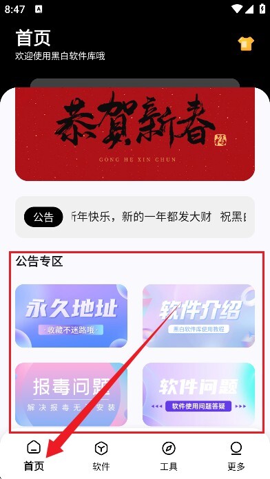 进入首页后,首先映入眼帘的是各类公告专区,这里会为大家提供各类软件资讯,以及使用过程中遇到的问题和相应的解决方法。