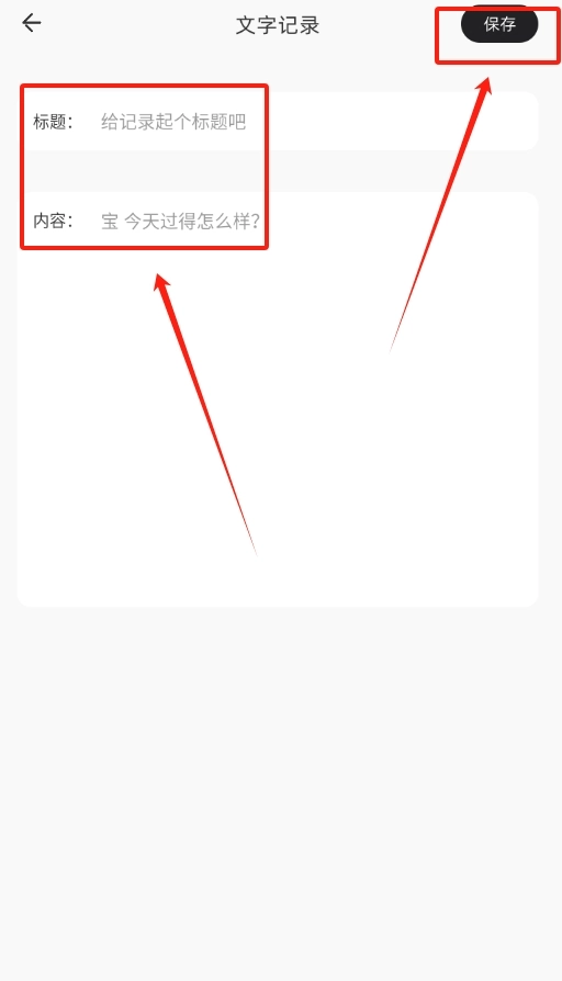 3、 输入记录的标题和具体内容后,点击保存按钮完成操作。