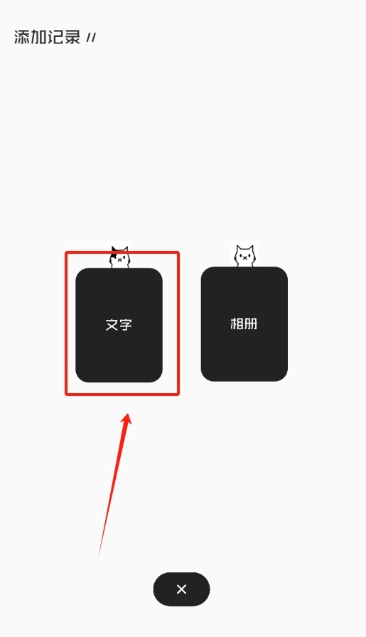 2、 在弹出的选项中选择 “文字” 记录方式,准备添加新内容。