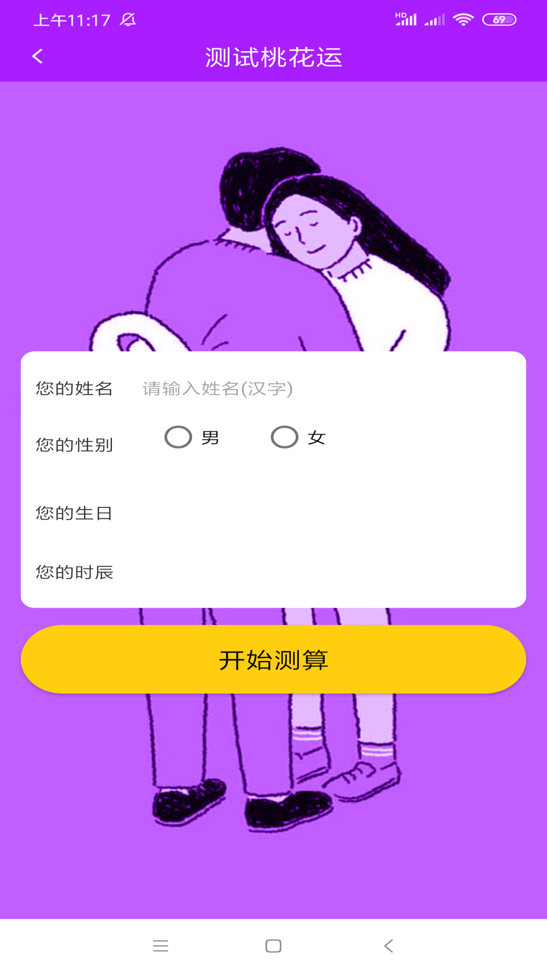 点击“测一测”,输入出生时间、性别和年龄,就能测试桃花运。