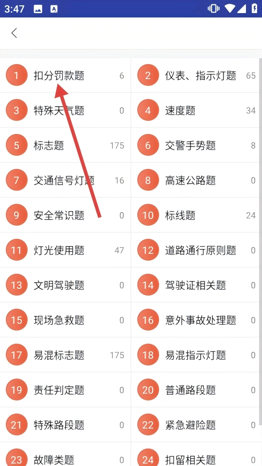 3、于专项练习分类页面挑选目标题型,比如点击【扣分罚款题】,便能进入该题型的练习页面。