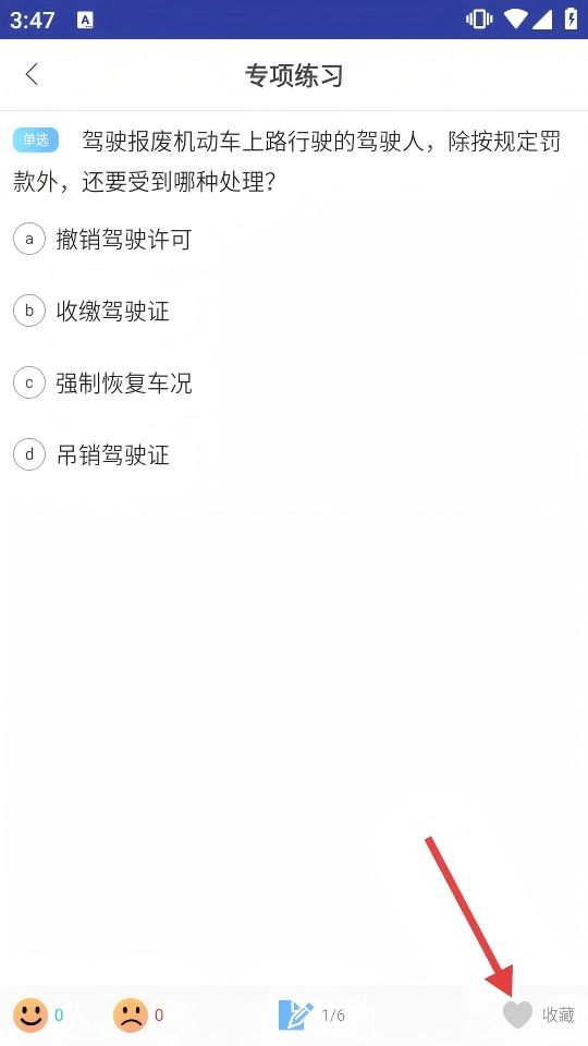 4、于专项练习答题页面完成答题后,要是想要收藏该题目,可点击右下角的【收藏】按钮。