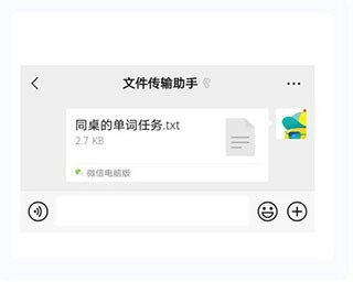1、单词书是txt后缀的文本格式,单词一行一个,而且不能有空格,确认文档里面的单词符合上面的格式以后,先把单词书发送到微信。