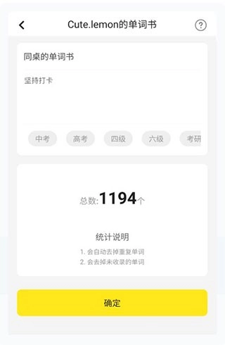 5、确认之后,就能在单词书列表的“我的标签”里看到刚刚上传的单词书。点击该单词书,即可开启背单词之旅。