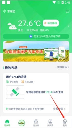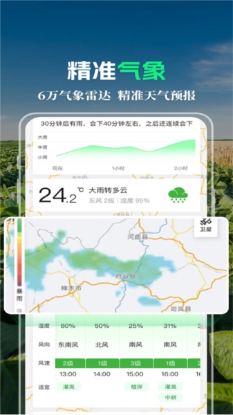 2、【精准气象】为农场提供地块级的精准天气预报和气象预警服务;