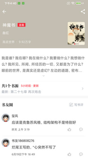 3、借助话题圈子分享自己钟爱的书籍,能够加入更多小说相关的社交群组,和更多网友进行更深入的交流互动。