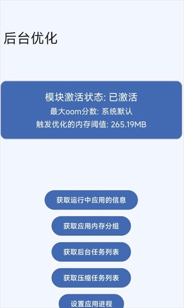 后台优化是一款专注于提升手机性能和运行效率的软件。它通过多种技术手段,帮助用户清理无用的后台进程、释放内存空间、管理电池使用等,帮助用户轻松解决手机卡顿、耗电等问题,提升手机的整体使用体验。