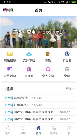 1、软件中的功能非常广阔,支持查看班级相册,考勤,还能够明细查看收缴费用,同时支持在线活动,支持网课等等,并且在这里能够收到更加权威的通知信息。