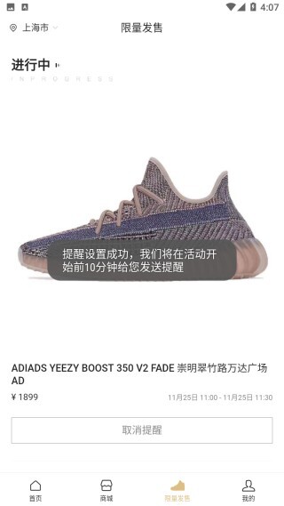 4、限量发售:尖货潮品一键提醒,提前开抢。