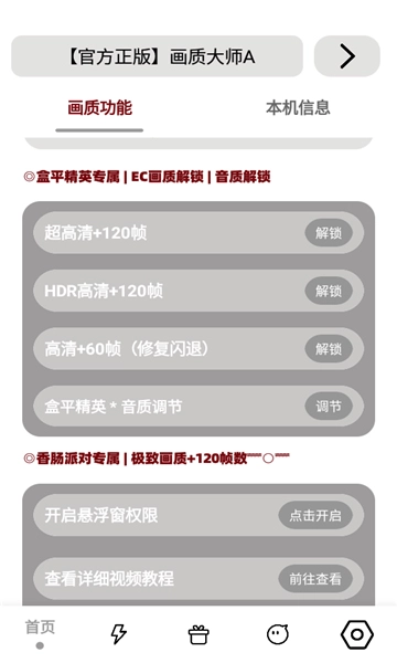 mfhzcc无任务画质大师是一款能给用户带来全新画面体验的游戏辅助软件。它操作简便,适用于各类游戏及其不同版本,兼容性极佳,能为众多用户提供有力帮助。该软件不仅不会导致封号,而且无需root权限,使用起来方便快捷。软件内具备流畅、高清、超高清等多种画质选项,可满足你的需求。