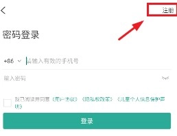 点击右上角“注册”按钮