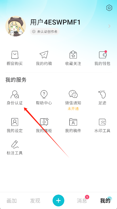 3、身份认证:打开应用后,在首页右下角找到并点击【我的】,接着找到并点击【身份认证】。