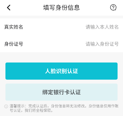 4、实名认证:进入身份认证页面后,点击选择【实名认证】选项,接着准确填写本人的真实姓名与身份证号码,即可完成该认证流程。