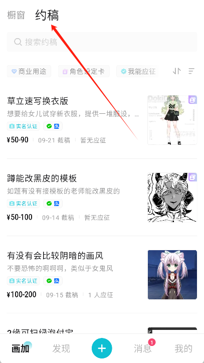 5、进入约稿页面:登录成功后,在平台主界面中找到【约稿】选项,点击该选项即可进入约稿页面。