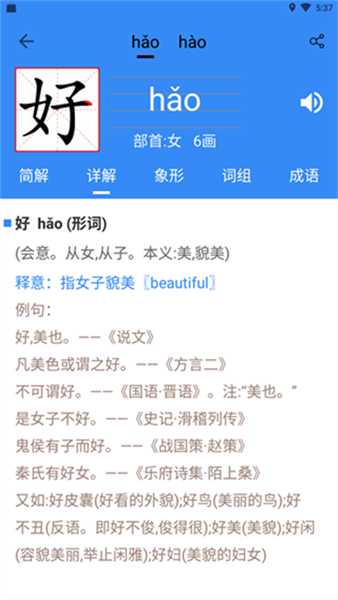 象形字典是一款颇具趣味的手机字典应用。它采用更生动直观的形式,借助解析汉字的字形构造,为使用者提供详尽的汉字释义与实例。用户只需输入汉字或拼音,就能获取所需的查询结果,从而轻松知晓汉字的演变历程与起源,在积累汉字知识的同时,也丰富了文化常识。另外,该软件还支持多种不同的查询方法,涵盖了广泛的汉字资源,十分适合孩子学习汉字时使用。