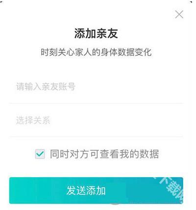 3、填写亲友的账号,选择对应的亲友关系,发送关联请求,待亲友通过请求后,即可查看其身体数据。