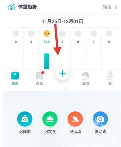 1、打开好轻后,在页面底部找到+号按钮,点击该按钮会弹出一个选择框,从中选择第二个“记饮食”选项。