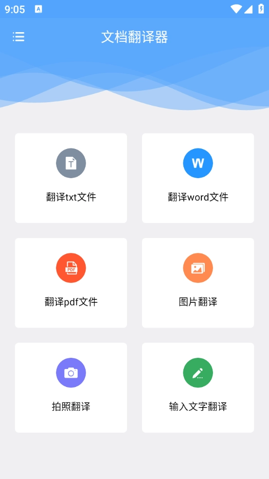 进入首页后,能看到多个翻译板块,涵盖文件翻译、图片翻译、文字翻译等类型。
