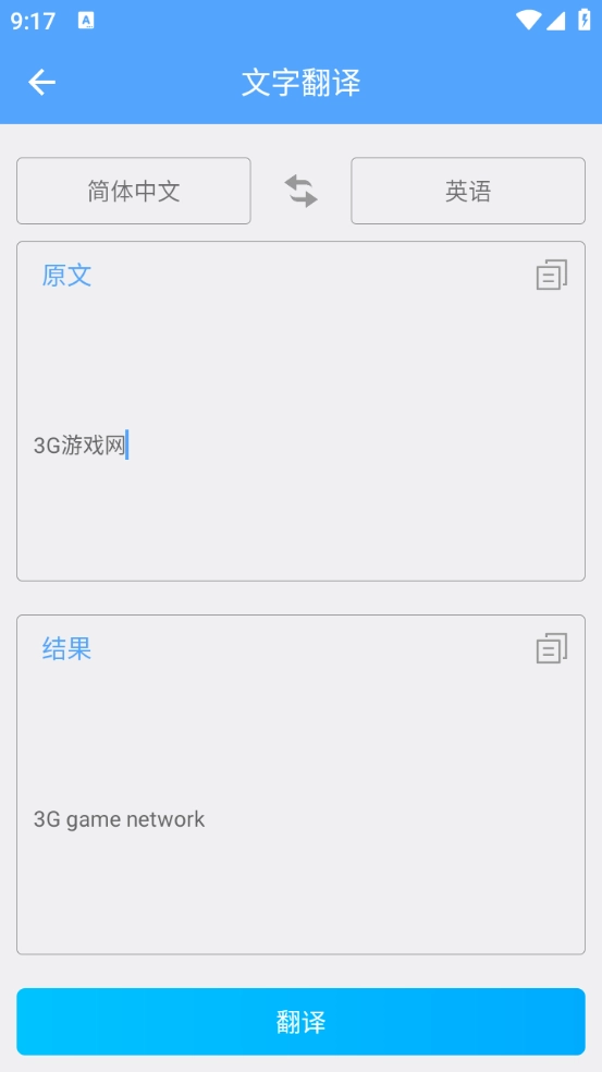 4、在输入框内输入文字内容,点击“翻译”按钮后,即可查看对应的译文。