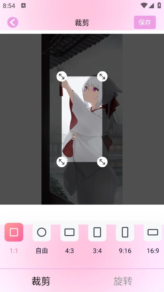3、按照需求对图片尺寸进行裁剪,待调整至满意效果后,点击右上角的保存按钮即可。