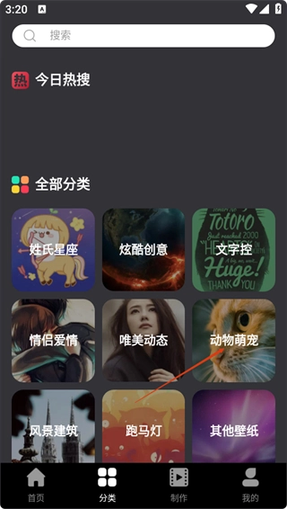 2、在分类页面,点击【动物萌宠】分类,即可进入该分类对应的壁纸列表界面。