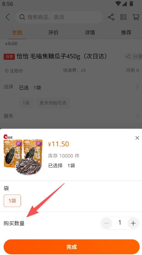 3、设置购买数量,完成商品选购。