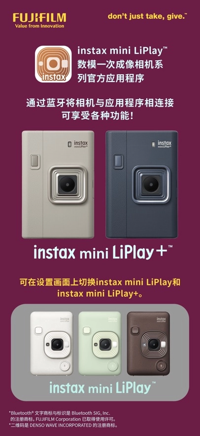 本应用程序是专门为富士胶片一次成像instax mini LiPlay™相机和instax mini LiPlay+™相机设计的。