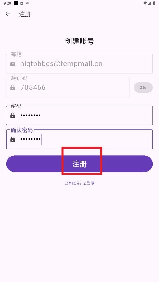 4. 随后输入预先设定的密码,接着点击“注册”,账号即可成功创建。