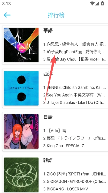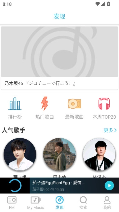 2、选择歌曲资源播放时,可直接点击歌手头像,也可以在排行榜单里搜索查找。