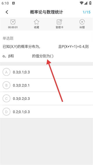4、进入章节练习界面后,能够查看像【概率论与数理统计】这类科目的题目,并开展答题练习。