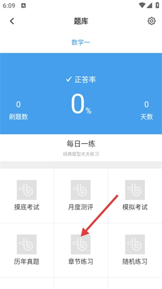 3、在题库界面,点击【章节练习】选项,即可进入对应科目章节的练习界面。