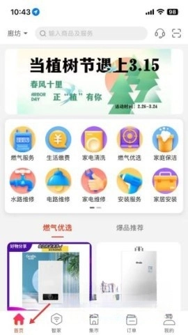 3、最后回到首页,多样的服务入口映入眼帘,燃气服务、生活缴费应有尽有,还有节日促销活动。在这里,你能快速找到所需服务,体验超棒!