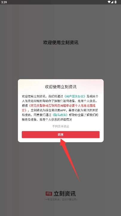 1、首次使用时,请仔细阅读用户协议和隐私政策,确认内容无误后,点击同意按钮即可进入登录界面。