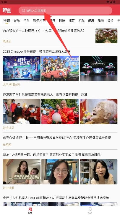 3、用户在首页能够浏览各类新闻资讯与实时热点,还可以借助关键词搜索来查找相关内容。