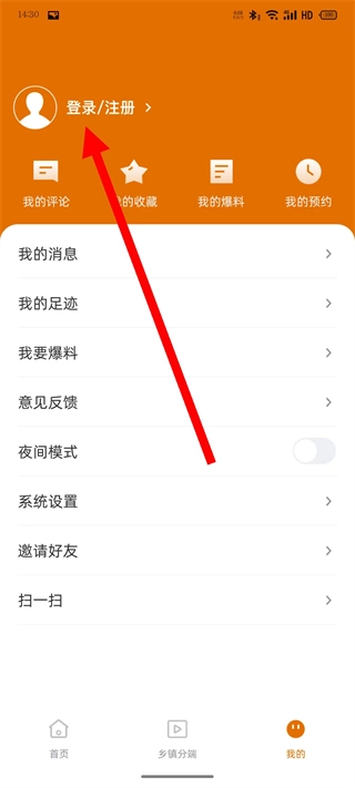 2、在我的页面,点击登录注册,进入登录页面。