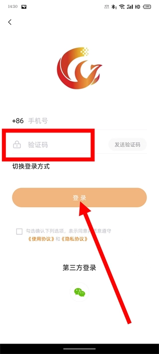 3、在登录页面,输入手机号,点击发送验证码。
