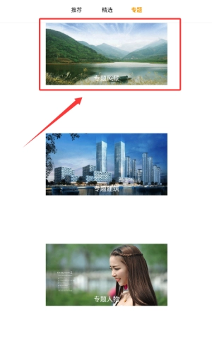 2、在导航栏点击被框选的精选标签切换。
