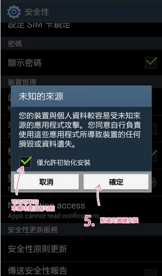 第四步:进入安全性设定页面后,请勾选未知的来源。