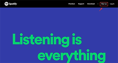 1、第一步,我们要打开Spotify的官网:www.spotify.com ,然后点击页面右上角的“Sign Up”按钮。